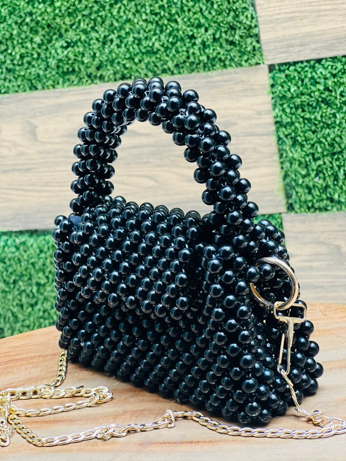 Luxury Metallic Pearl Beaded Mini Handbag – Handmade by Pearls By Zainab